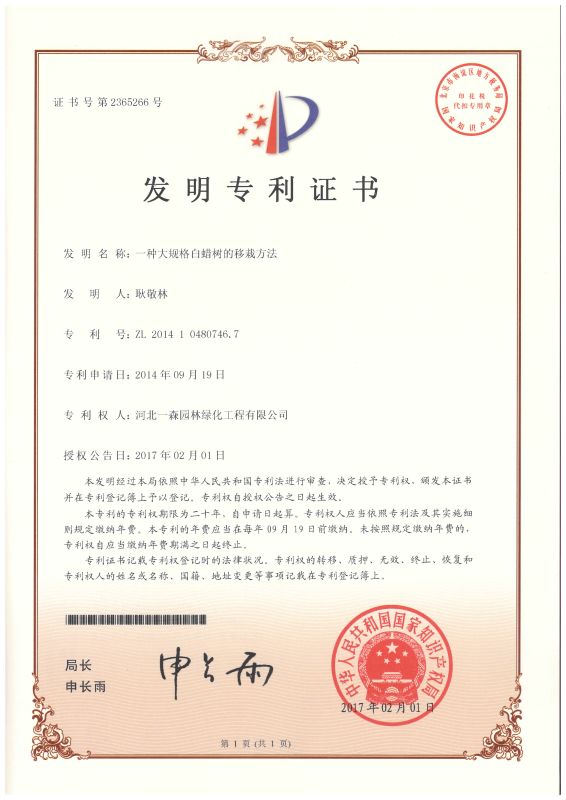 “一種大規格白蠟樹的移栽方法”發明專利