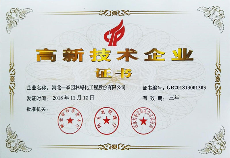 高新技術企業證書